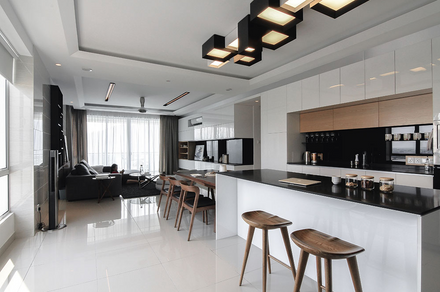 "This project featured a spacious one-storey penthouse measuring 2,400 square feet, complete with ample outdoor space ideal for a rooftop garden. The owner, a professional with a hectic lifestyle, desired a home that offered an organized, clutter-free environment where everything is neatly displayed or stored."